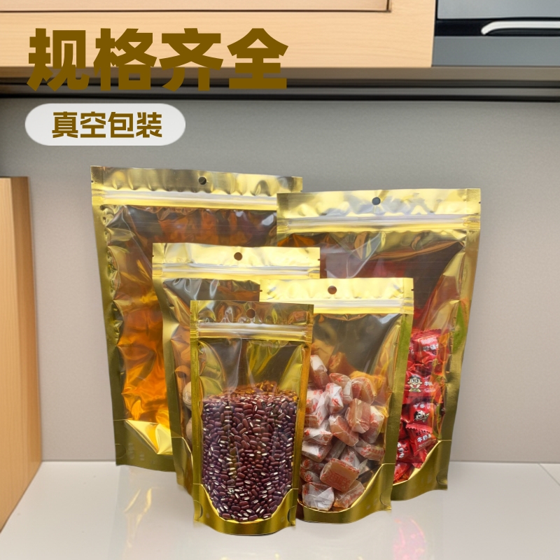 メーカー卸売り金色の窓を開けて自立した骨袋半透明アルミ箔袋旧正月の干物ナッツ包装袋スポット
