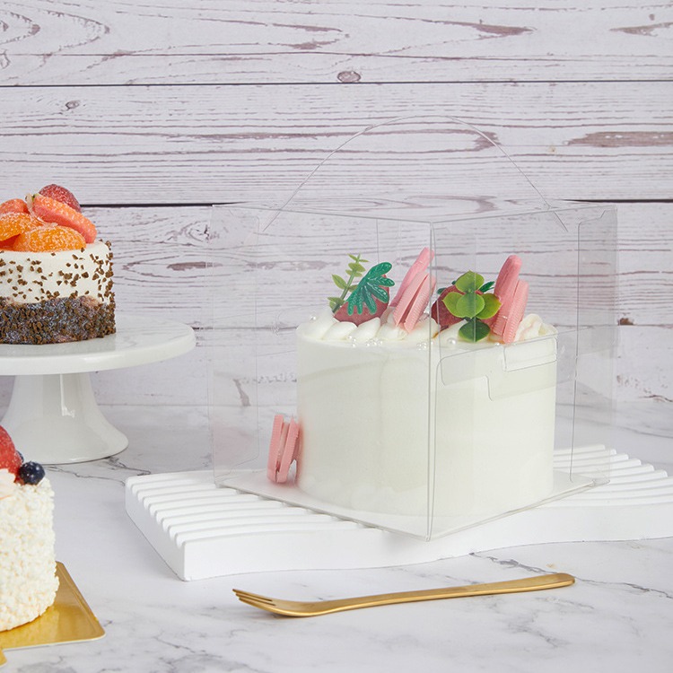 透明なポータブルケーキボックス正方形クリエイティブ小さなペストリーボックスカットムースフランススイートケーキボックスカスタムロゴ