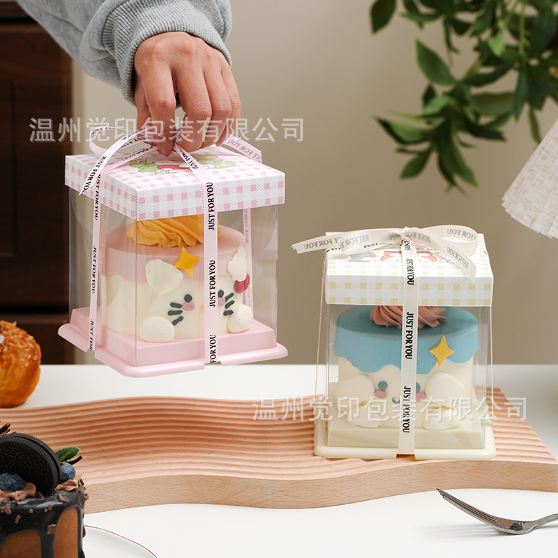 3inch 誕生日ケーキ包装箱漫画透明使い捨てベーキング包装箱アフタヌーンティーテイクアウトボックス