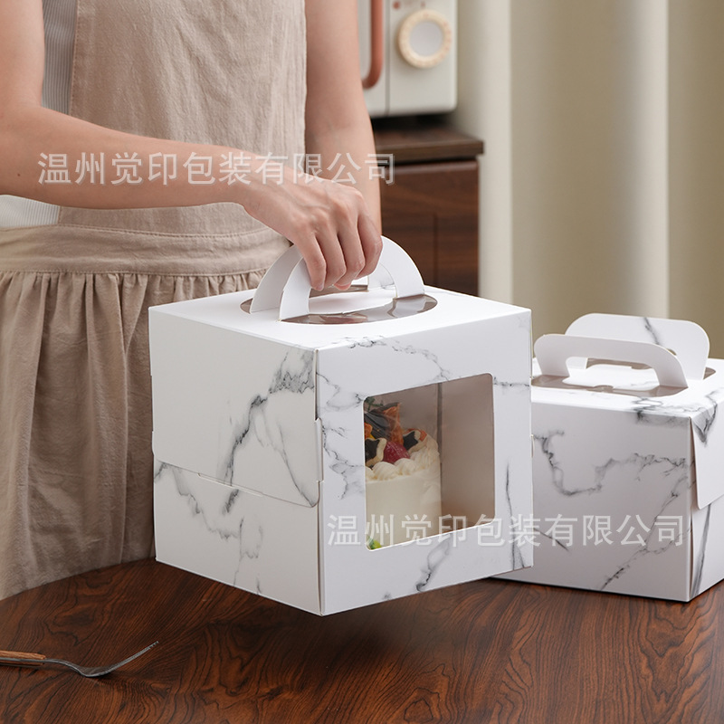 4 インチ 6inch 8inch パック大理石模様の高さの誕生日包装箱ポータブル増粘ムースケーキボックス在庫あり