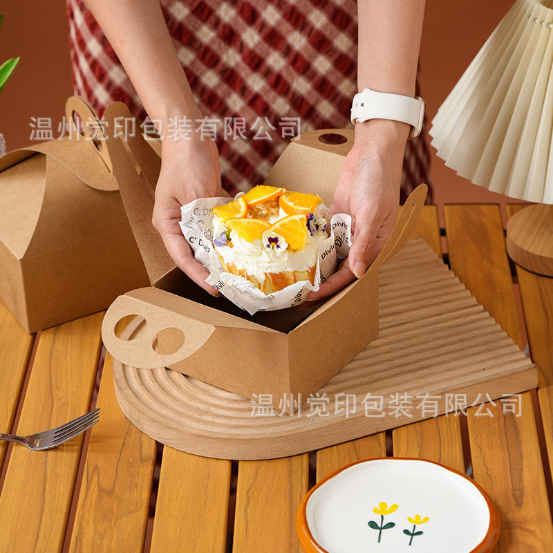 4inch バスクチーズケーキボックスライトチーズ包装箱シフォンペストリーボックス韓国クラフト紙包装箱