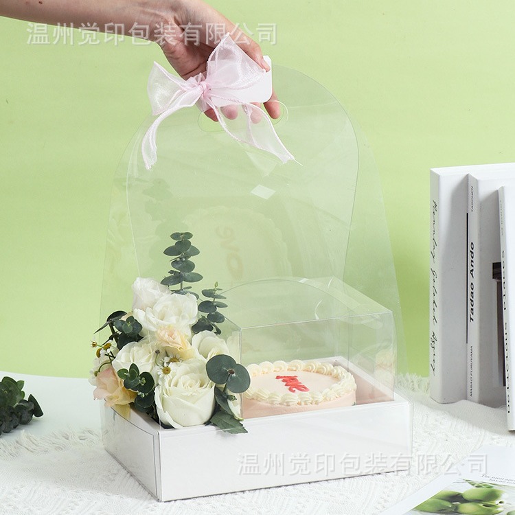 バレンタインデー透明PET製折りたたみ式フラワーボックスDIYフラワーアレンジメントボックス花束4inchケーキボックス洋菓子ギフトボックス