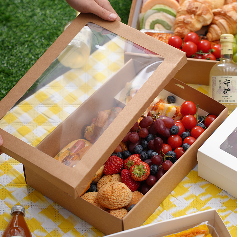 包郵便ピクニック箱使い捨て弁当箱デザート果物クラフト紙バーベキュー弁当寿司デザート包装箱