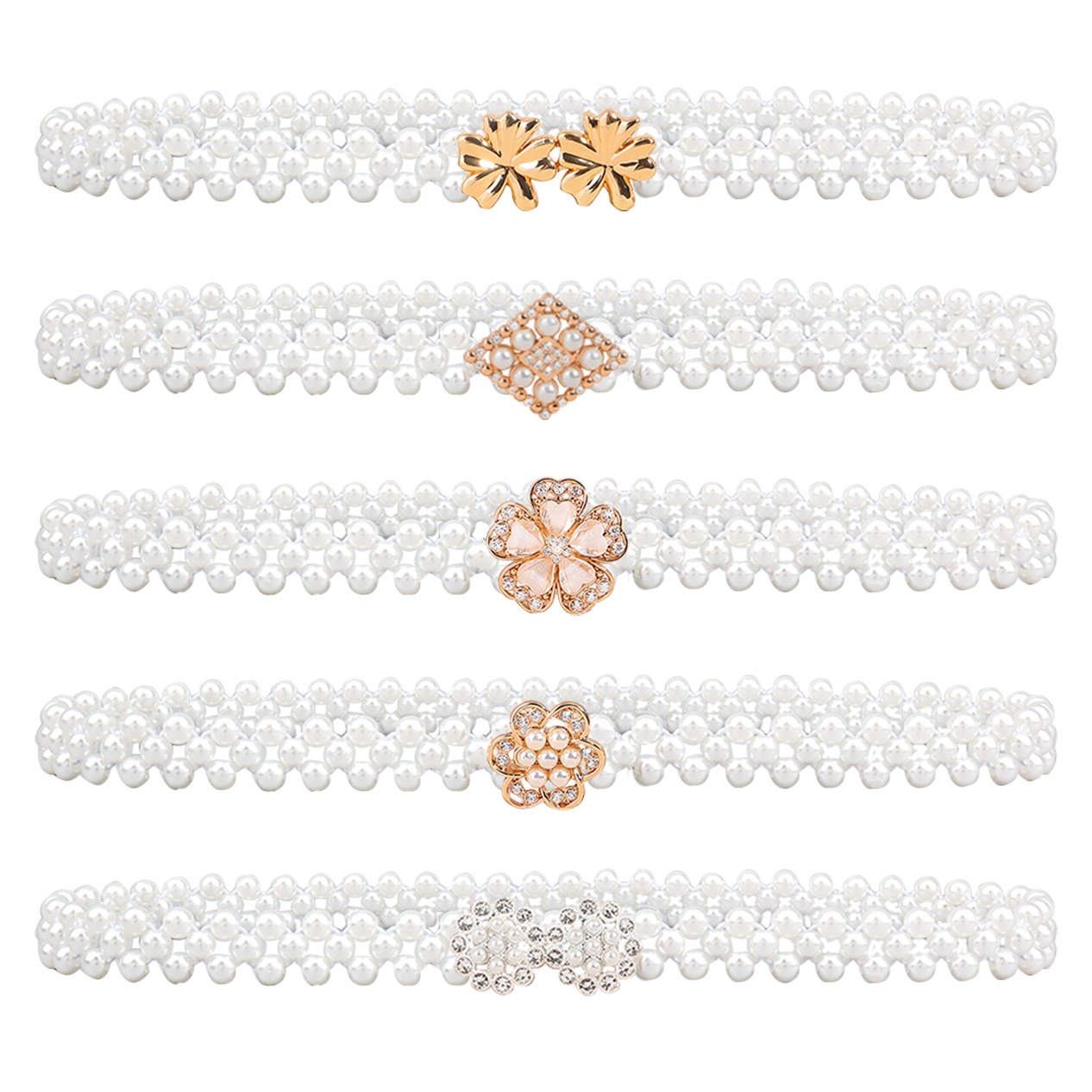 ツバキの真珠の細い腰のチェーンは女性の黒色の白い花のベルトを飾ってワンピースを飾ります。