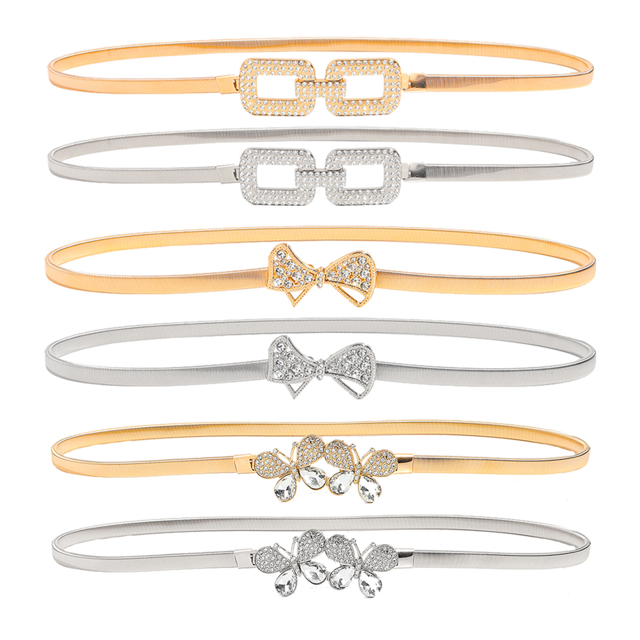 新商品の女性は細いベルトの金属の弾力性を緩めて腰の高級感を束ねます。