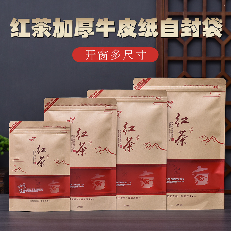 汎用紅茶茶葉包装袋ジッパー自封袋3両半斤入クラフト紙散茶密封袋