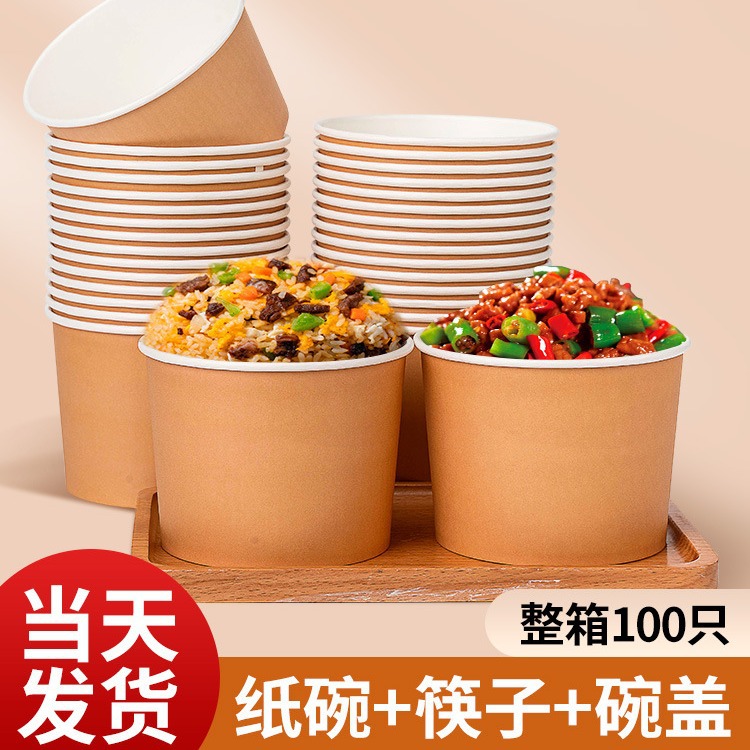 紙碗使い捨て碗箸セットピクニック蓋付き包装箱使い捨て弁当箱弁当箱家庭用カップラーメン碗
