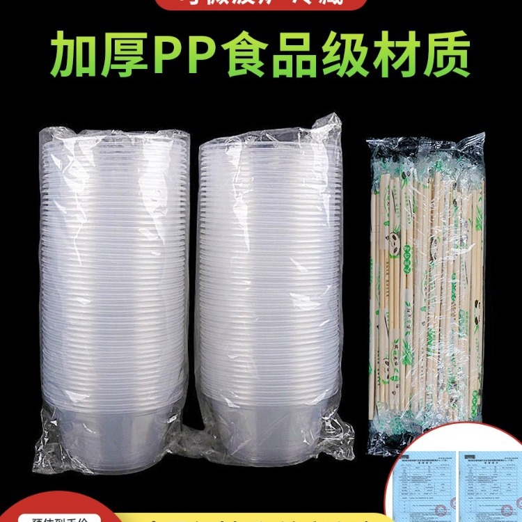 使い捨て食器と箸のセット家庭用スープと碗の弁当箱の箸を厚くしてプラスチックの円形を包んで弁当箱の卸売りを包装します。