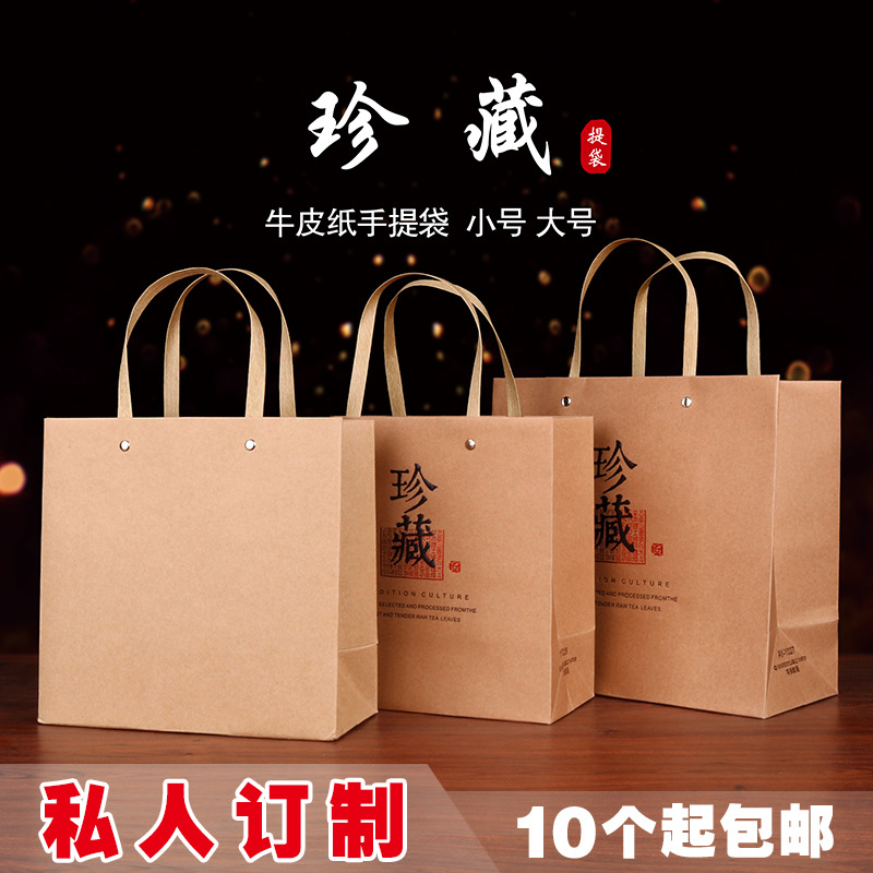 お茶の手提げ袋緑茶紅茶リベットクラフト紙袋シンプルレトロ手持ち茶包装袋通用