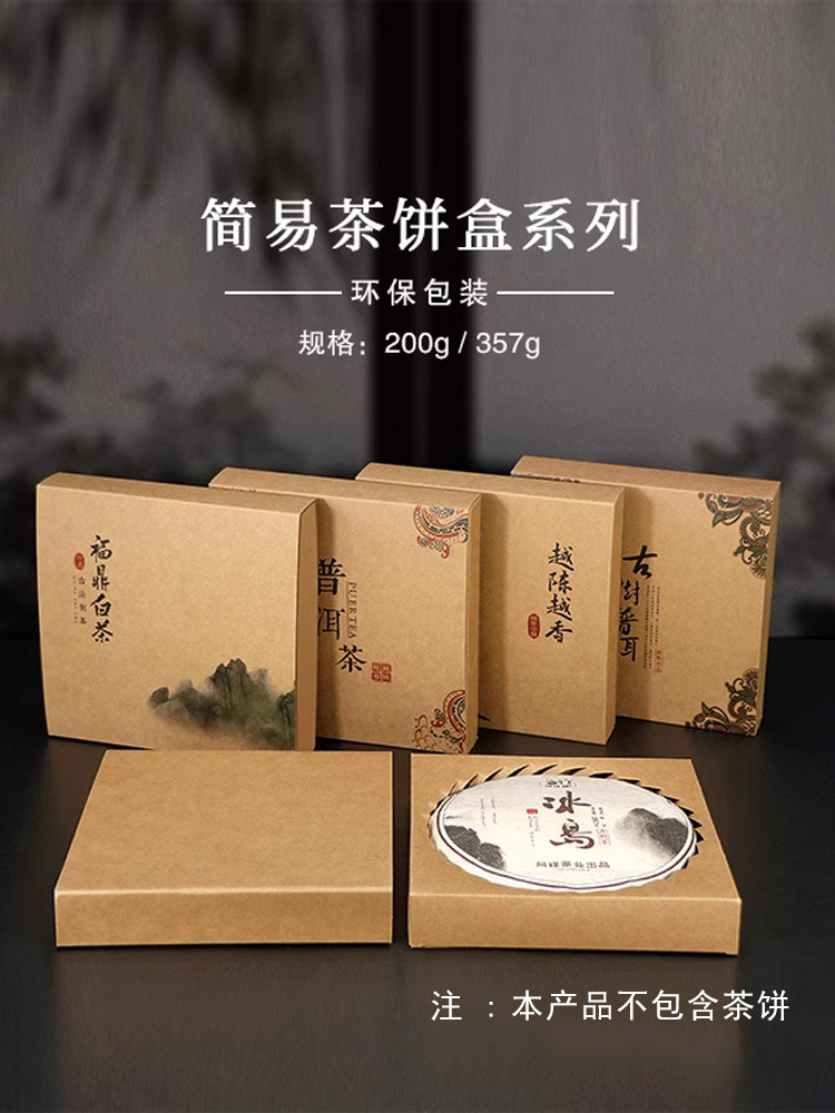 プーアル茶餅包装箱簡易牛革紙箱200g357g福鼎白茶単餅収納ケース共通