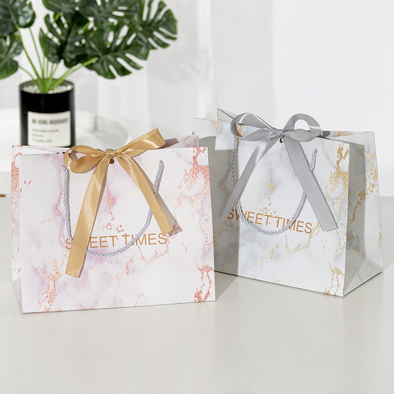 Ins風ギフトバッグ大理石紋手提げ袋包装袋紙袋創意祝日ギフトバッグ服装袋