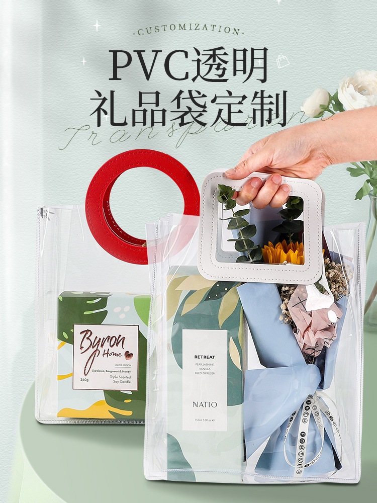 Pvc透明手提げ袋プラスチック誕生日プレゼント高級感結婚花嫁お土産袋ギフトバッグ教師の日