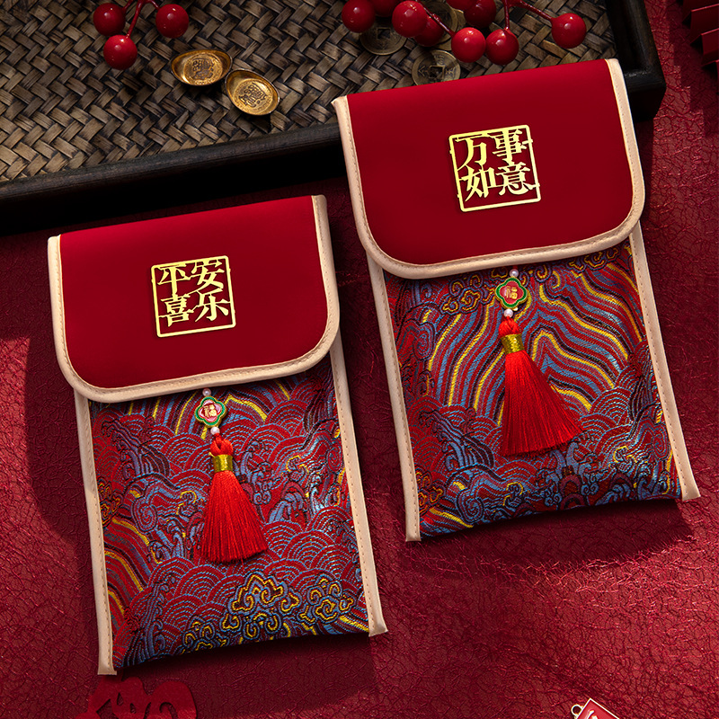 平和と喜びの生地赤い封筒バッグ 2025 新春節 1 万ドルの赤い封筒タッセル大晦日財布卸売