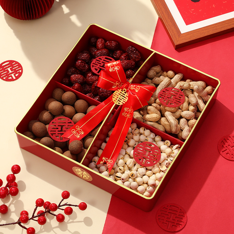 結婚式のベッドの装飾品、ドライフルーツの組み合わせ、フルーツプレート、婚約装飾、四角いドライフルーツボックス、プレスベッド