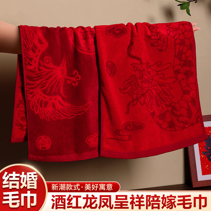 タオル結婚式ペアインターネット有名人の結婚式のカップル赤い持参金ダブルハピネスリターンギフトフェイスタオルウェディング用品コレクション