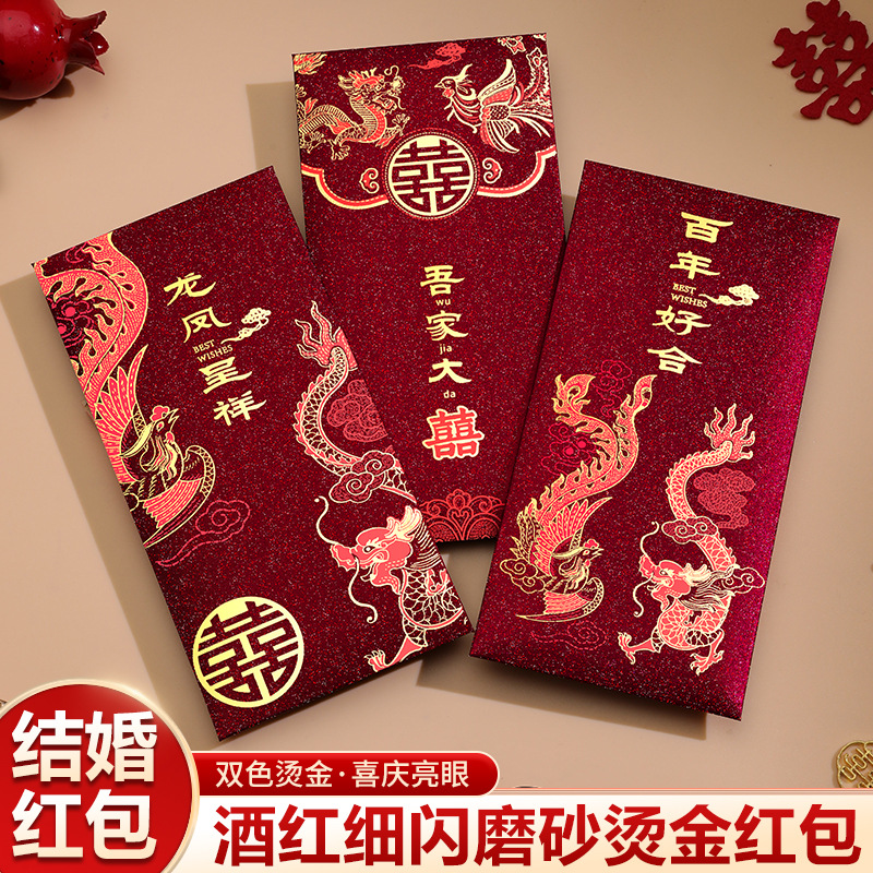 赤い封筒 結婚式専用 ワインレッド ドラゴンとフェニックス 高級千元赤い封筒 2025年新作 結婚式のギフトパッケージ