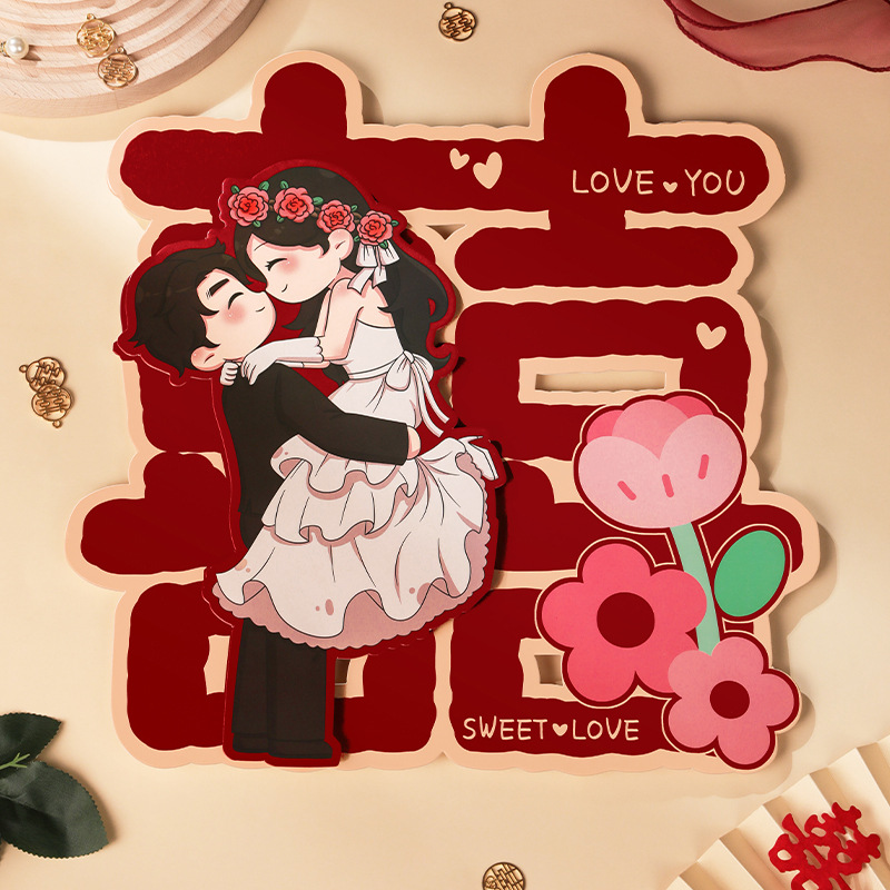 結婚式の特別な結婚式の部屋のドアの装飾、玄関ドアのステッカー、結婚式の寝室の立体ステッカー、囍の文字