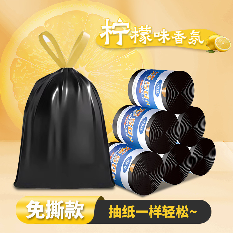 ポータブルゴミ袋、家庭用巾着キッチン、厚くて漏れないゴミ袋、便利な純黒、不透明でプライバシーを保護します。