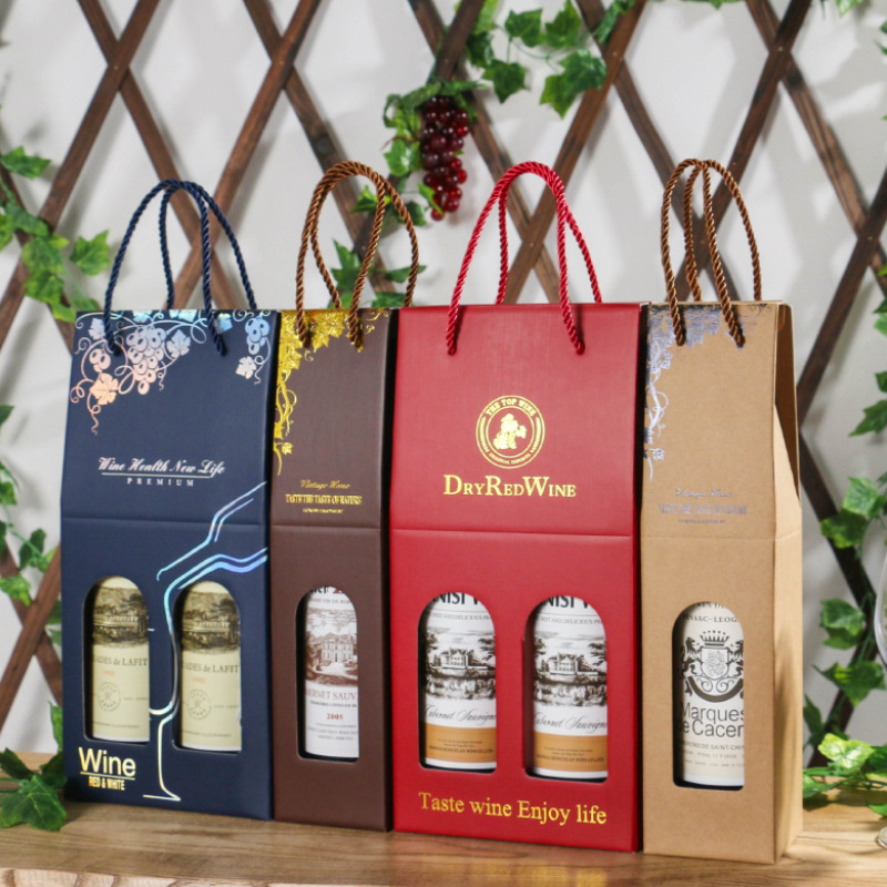 ワイン包装礼箱高級ワイン箱手提げ紙袋単本二本ワイン箱紙箱2本入
