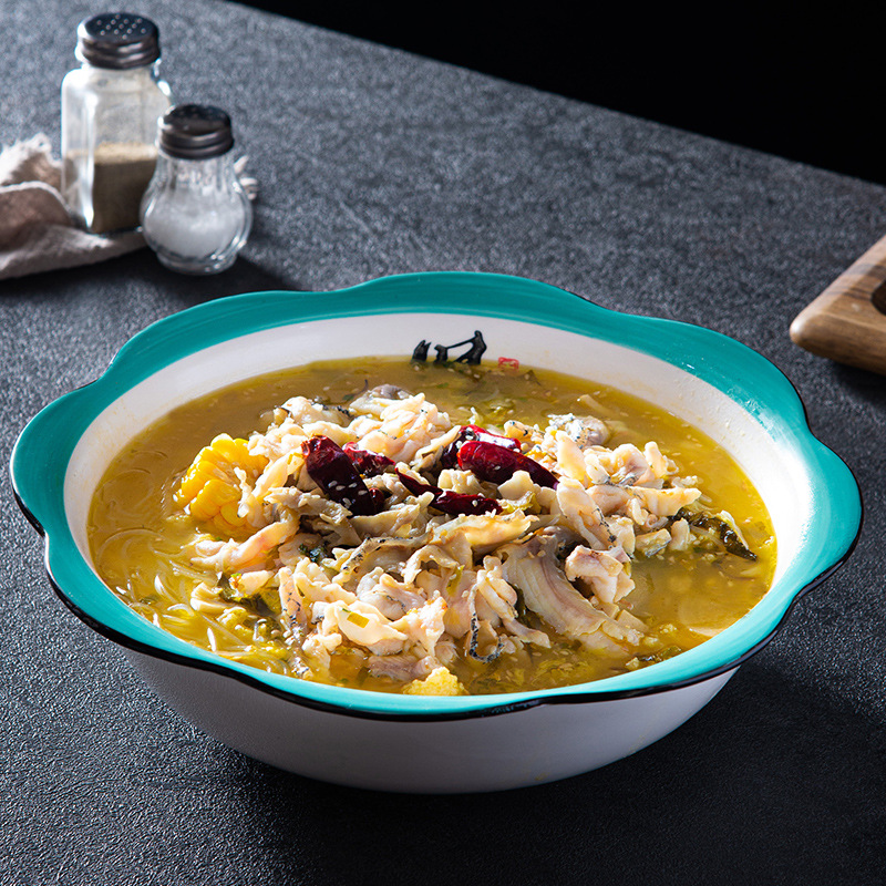 陶磁器のスープの碗の酸っぱい魚の大きい碗の家庭はスープになって牛肉の大きい碗のホテルのレストランの大容量のスープの碗を煮ます。