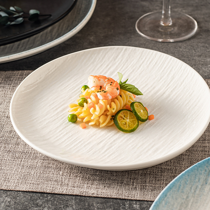 シンプルなクリエイティブ家庭用ホテルの陶磁器食器円形12インチ伸線白洋食皿ステーキ皿麦わら帽子スープ皿