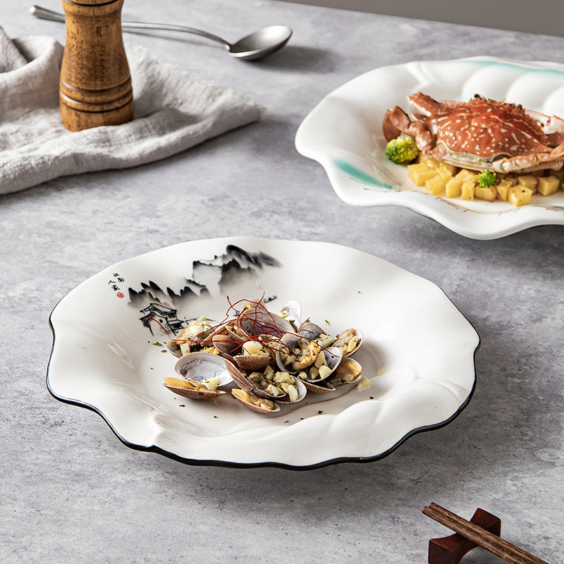 陶器皿、平皿、ステーキ皿、レストラン、ホテル食器、浅皿、丸皿、デザート皿、新中式デザイン