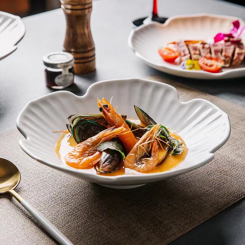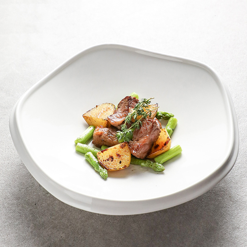 ホテル厨房用純白中華風不規則異形深皿冷菜皿冷菜食器磁器ホテル食器