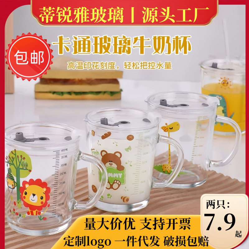 インターネットセレブミルクカップ子供用スケールカップ朝食ミルクカップベビーブリューミルクパウダーガラスカップストロー付き