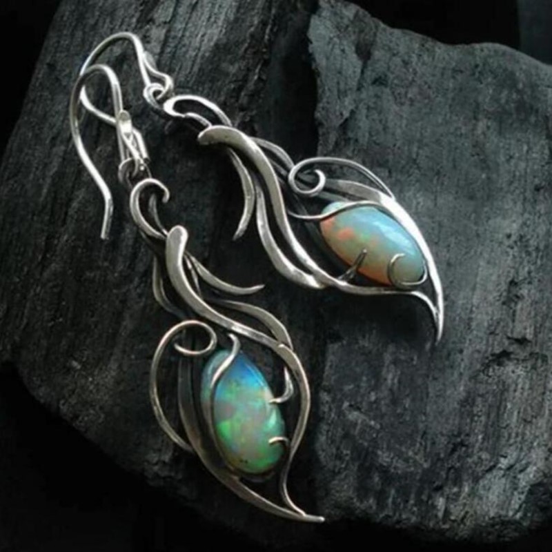国境を越えた新型の熱売幾何銀色の月亮石創意イヤリング文芸中古風個性潮流耳飾り