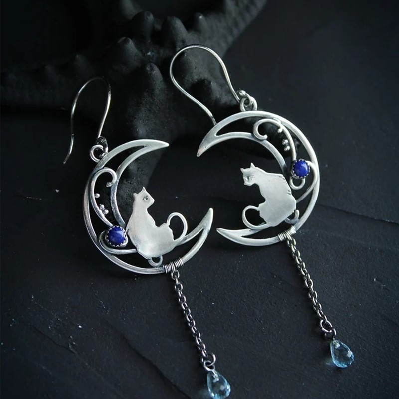 越境新型熱売レトロかわいい猫月創意イヤリング女性ファッション通勤誕生日パーティー耳飾り