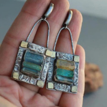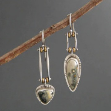 国境を越えた新型の熱売復古創意半円民族風瑠璃滴ゴム合金イヤリングファッション通勤耳飾り