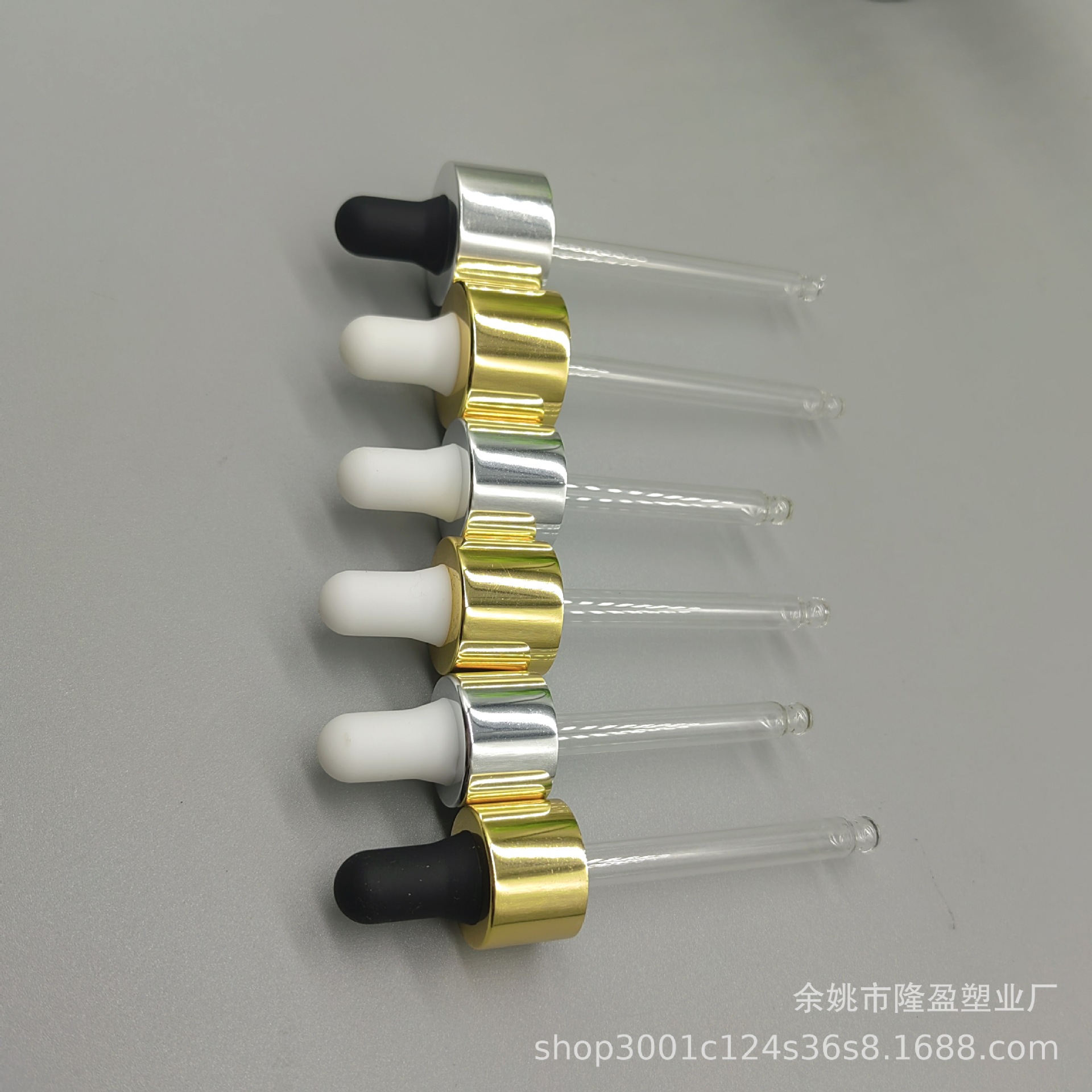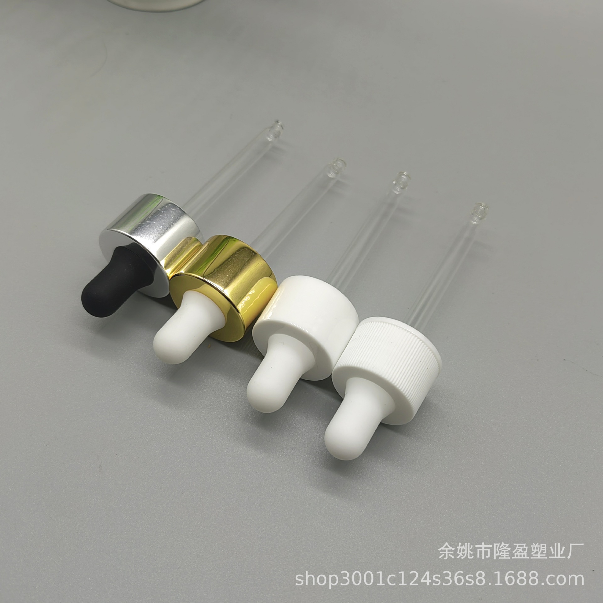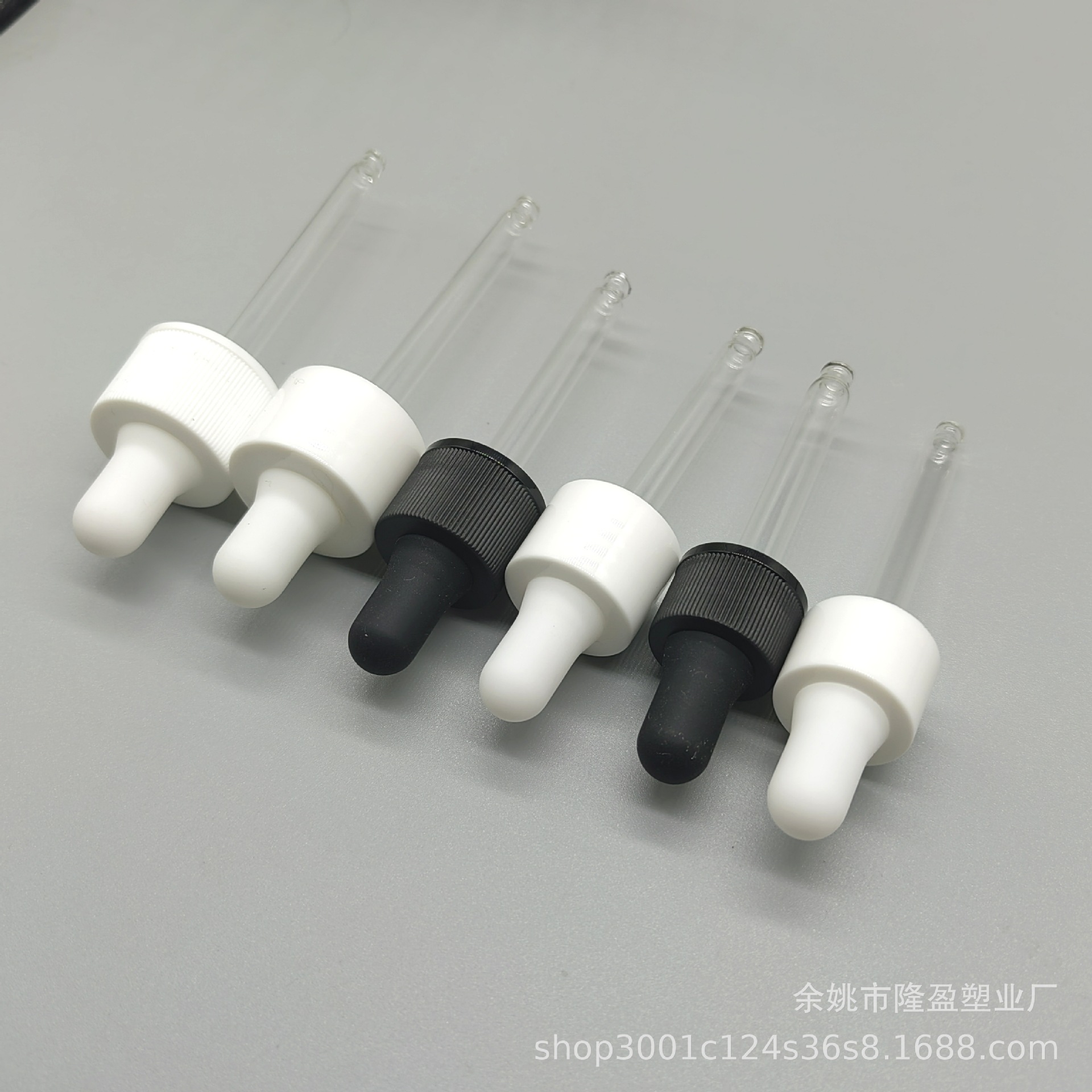 スポット18歯プラスチック電化アルミ滴管蓋精油瓶黒白ゴム滴管精華蓋液体滴頭