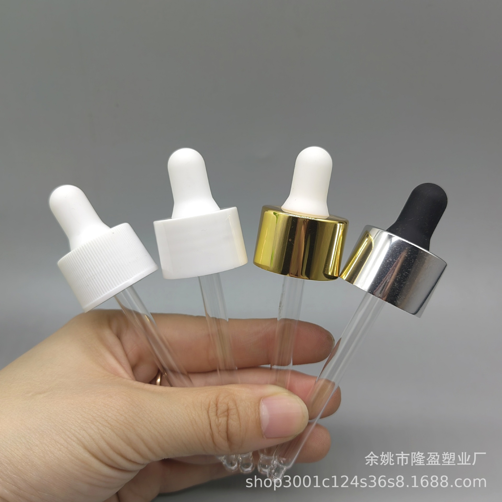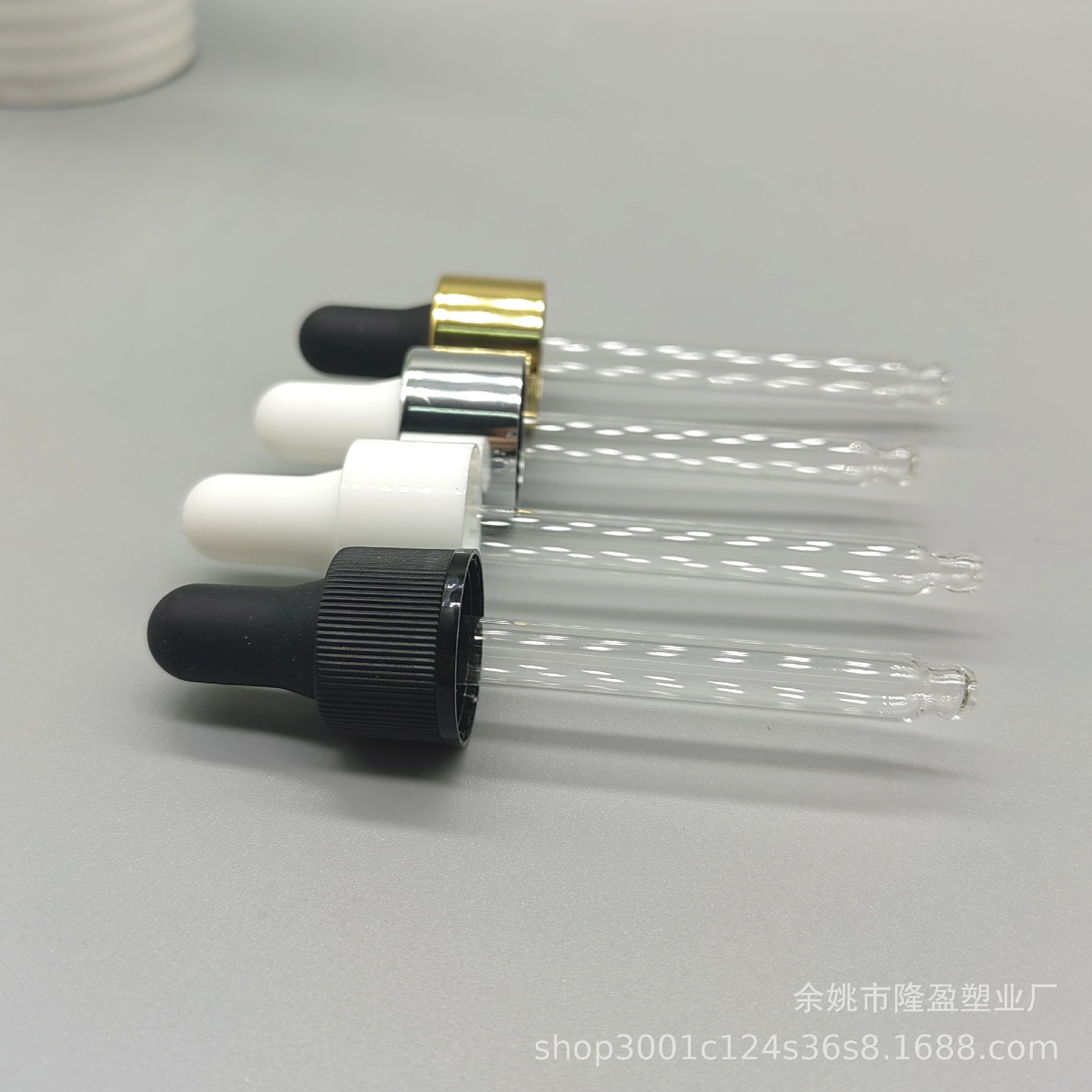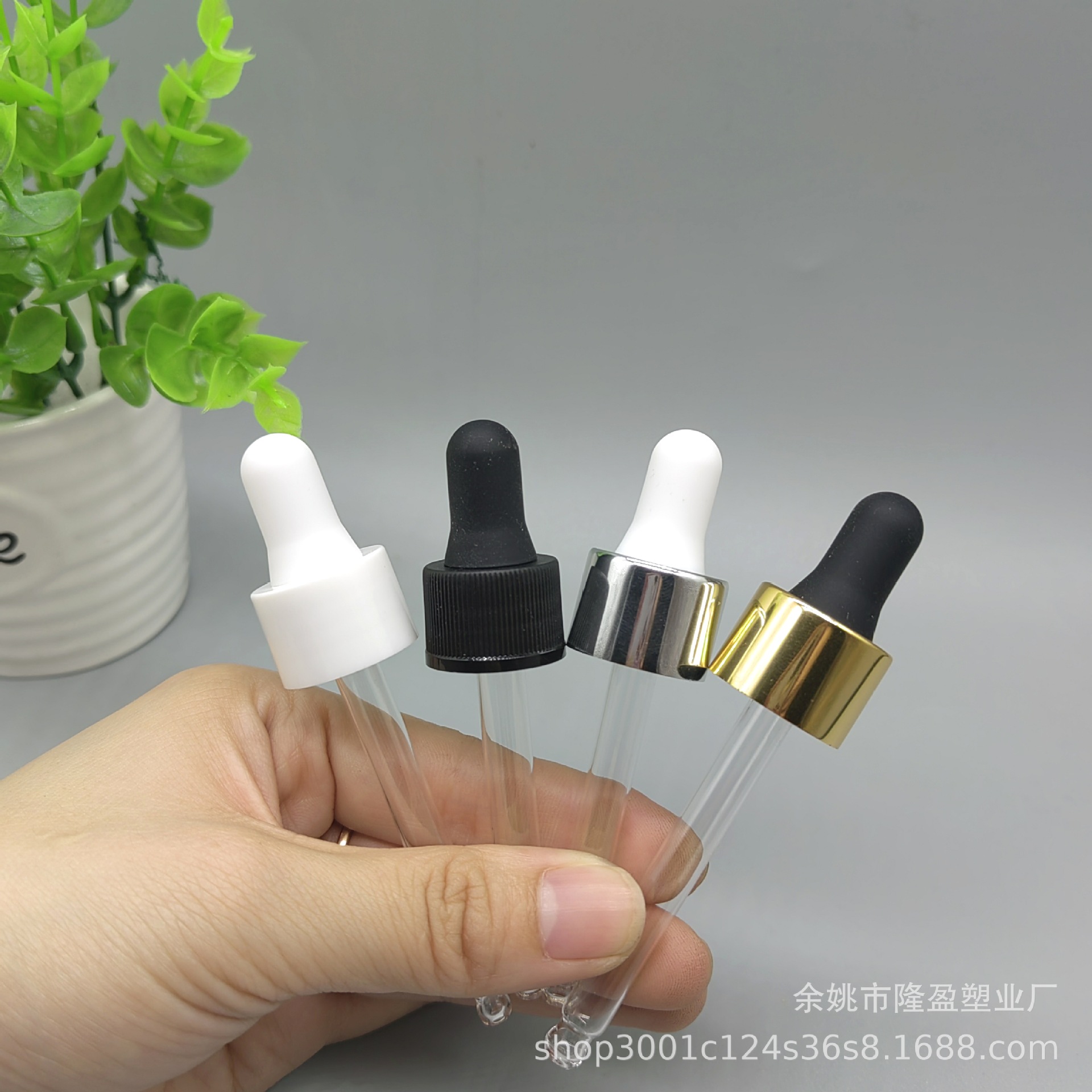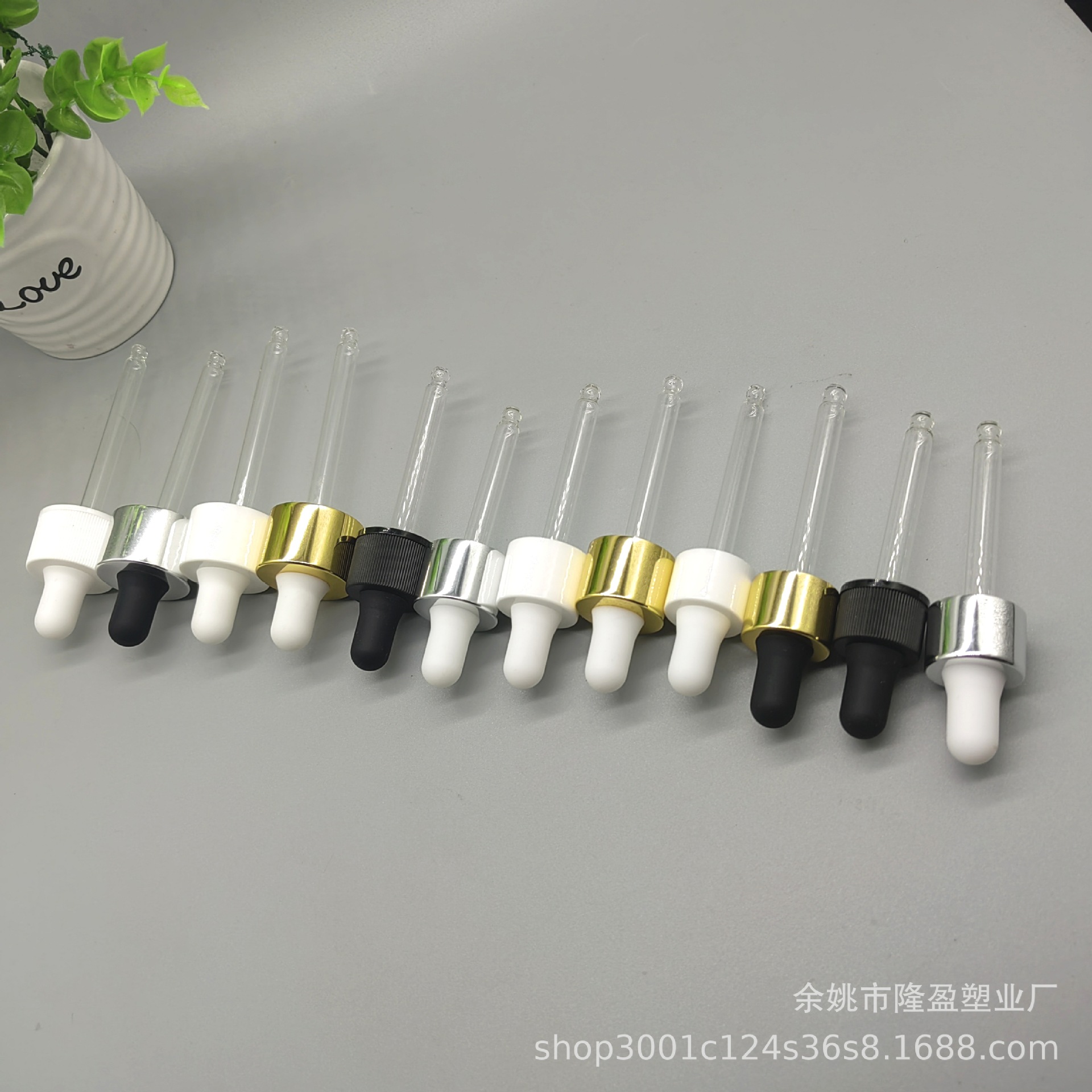 スポット18歯プラスチック電化アルミ滴管蓋精油瓶黒白ゴム滴管精華蓋液体滴頭
