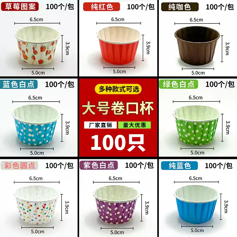 50/39純色耐高温フィルムカップ耐焼ケーキカップ巻き口フィルムカップ100個/件