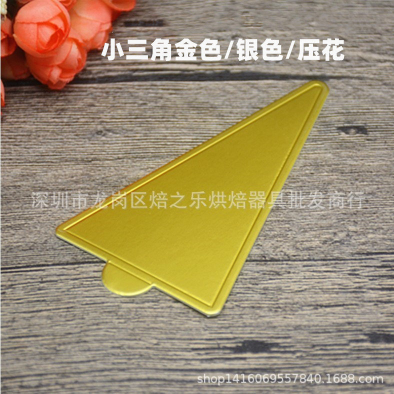 現物三角形ムース食品パッドケーキは金色のカードの硬い紙片の菓子の心を厚くして100枚を支えます。