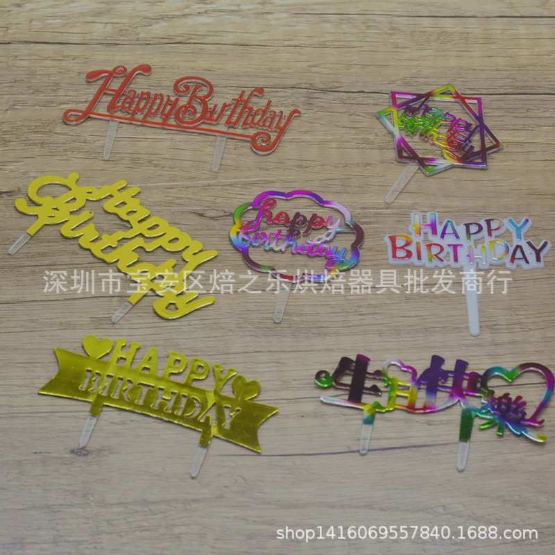 卸売りプラスチック箔押し英語誕生日おめでとうカードケーキ装飾カード100PCS/バッグ