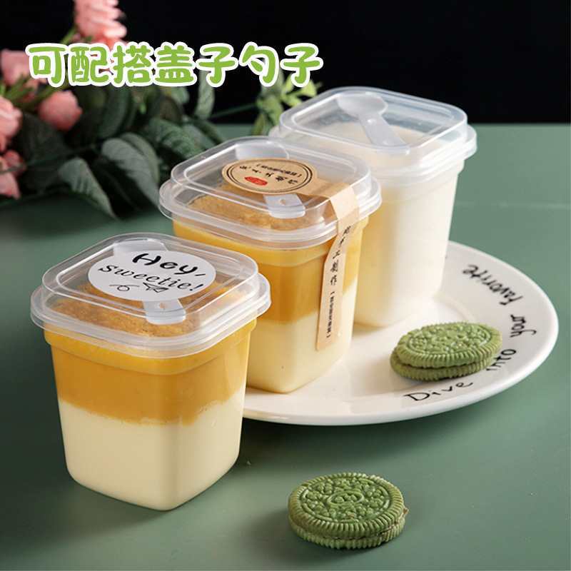 CH-118方形草莓蛋糕甜品杯布丁杯慕斯杯包装盒脏脏蛋糕杯含勺