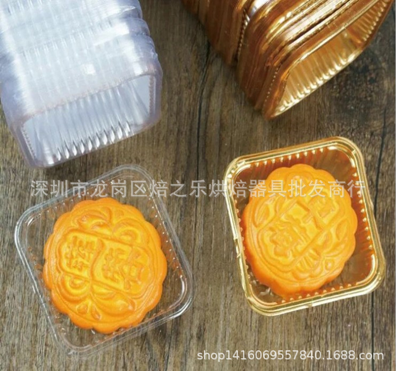 100g角型金色透明月餅プラスチック底托卵黄ショートニング包装雪媚娘吸塑托100個/件