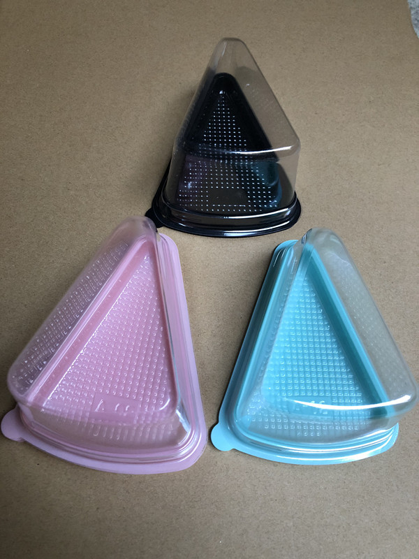ベーキング包装ピンク蓋付き三角形ムースガスケットプラスチック洋菓子底托カットケーキブリスターボックス
