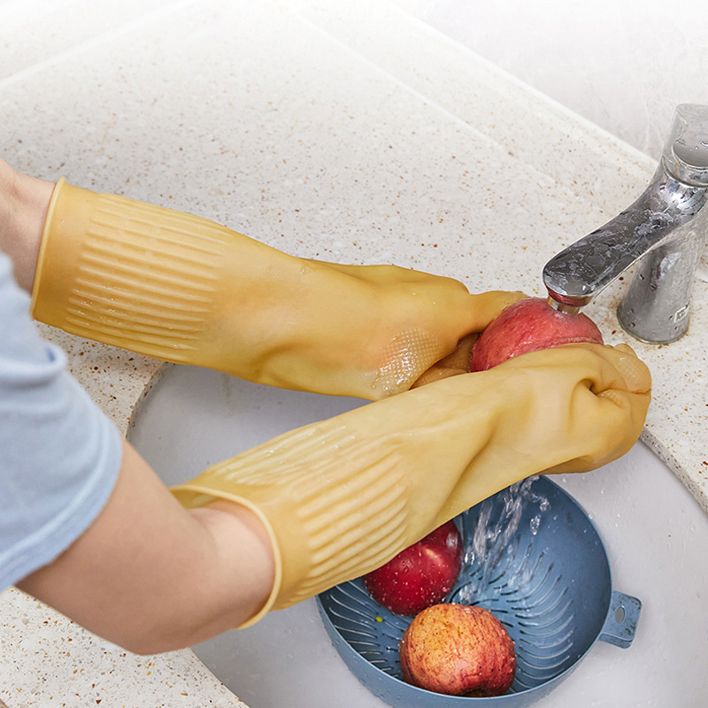 ラテックスベルベット手袋延長皿洗い手袋55cm延長キッチン用厚手家事手袋植毛ゴム