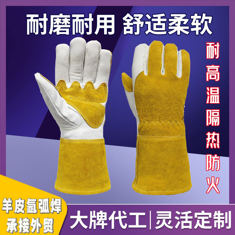 現物羊皮アルゴンアーク溶接手袋防火ケブラー溶接工手袋柔軟で快適な耐摩耗性労働保護手袋