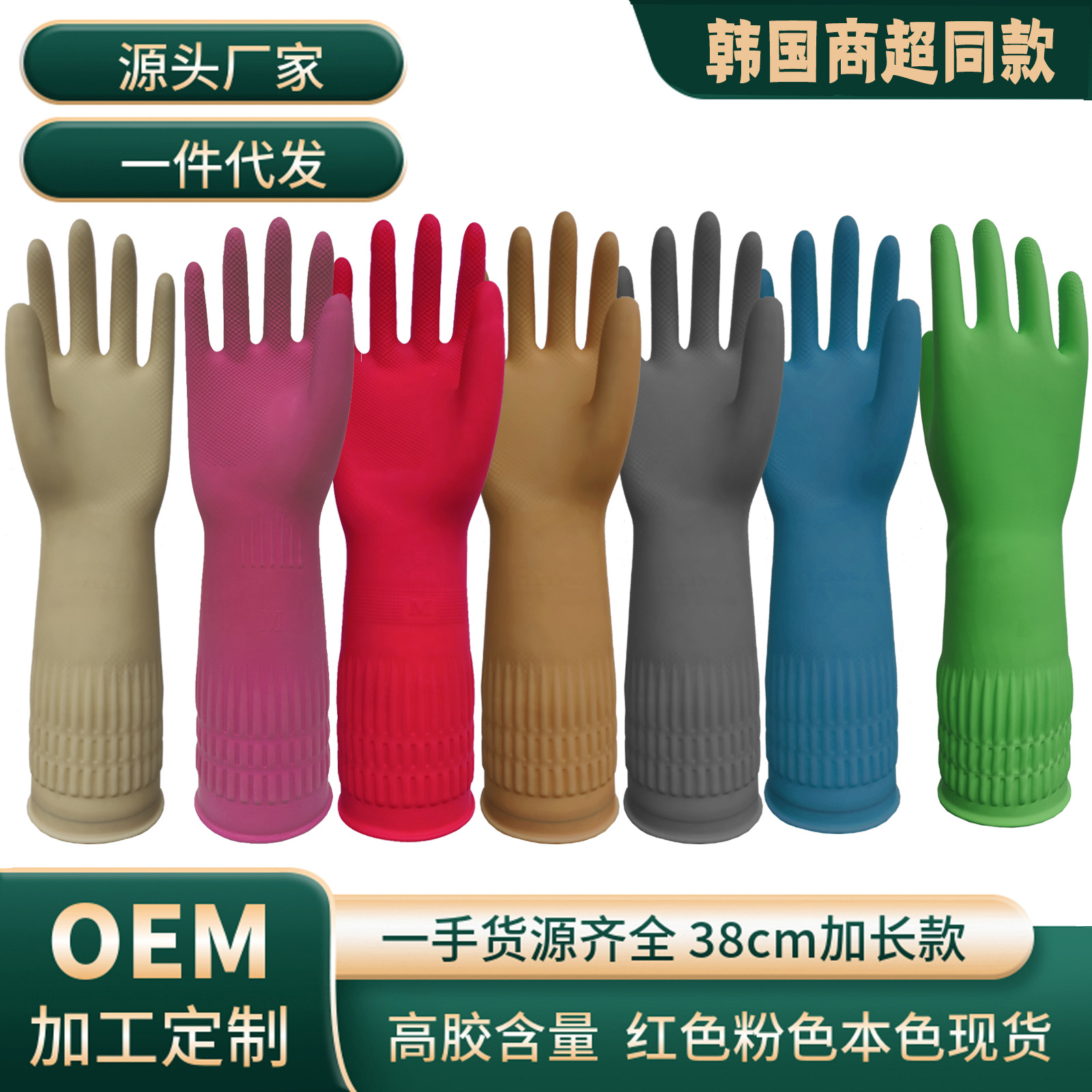 韓国のベルベット手袋の皿洗いは特に厚いラテックス手袋を長くして家事ゴム皮手袋をしてキムチ食品級を作る