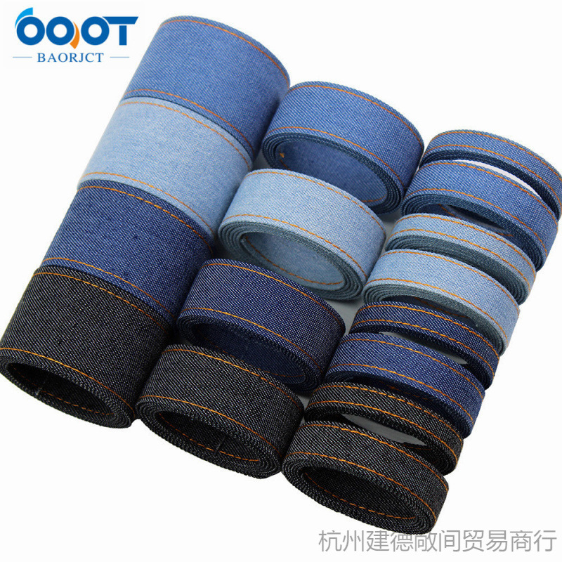 9/16/25/38mm両面圧線デニムリボン髪飾り蝶結び作り材料デニムサスペンダー