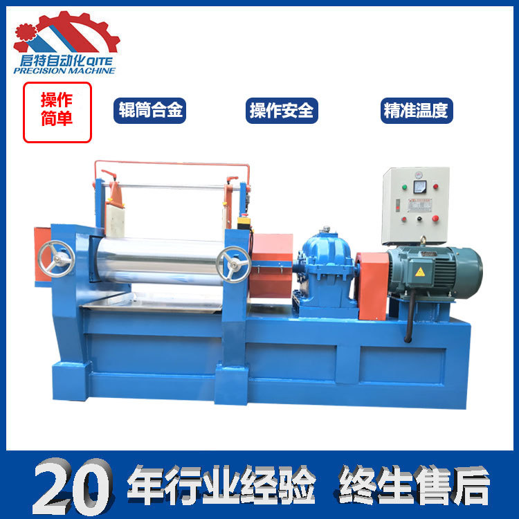 启特東莞12インチ混練機直結伝動シリカゲル出し物二本ロール混練機現物供給