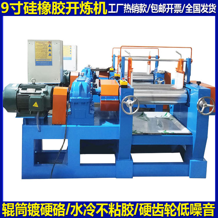 シリカゲル製品9インチ開練機ソフトシリコンランプ付練ゴム機ローラー間隔12センチ押出電線混練機