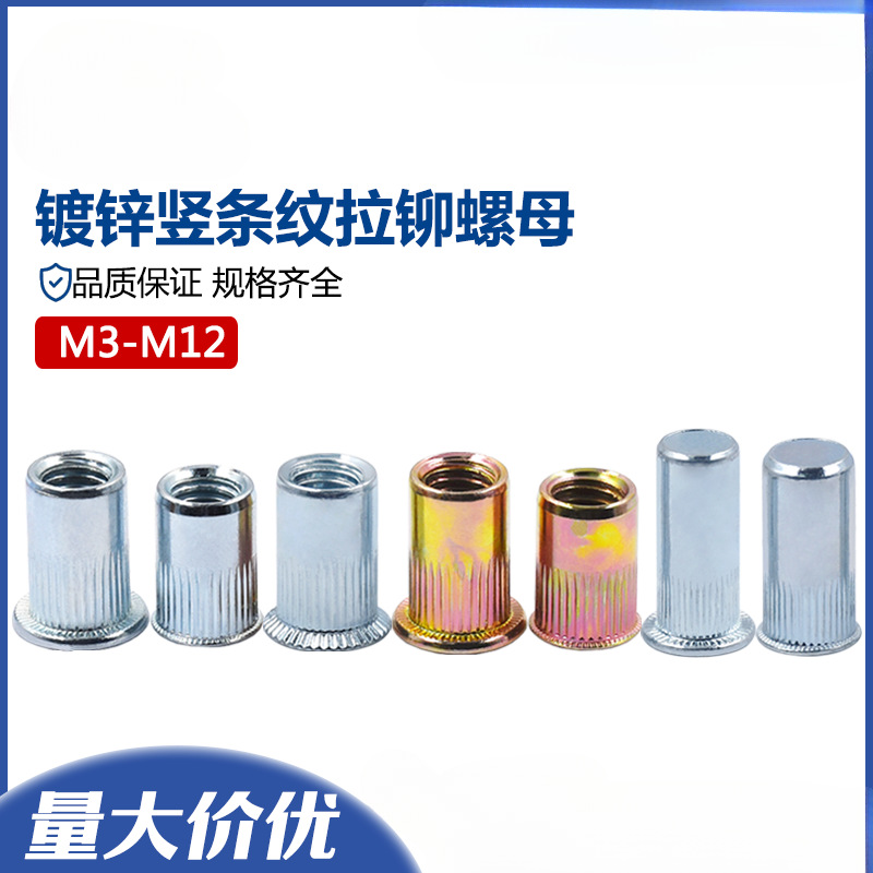 青白平頭縦縞リベットナットカラー亜鉛沈頭盲孔シール拉卯帽子英美製通孔卯ナット