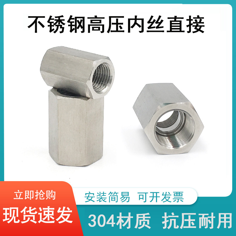 304ステンレス六角高圧内糸厚手内歯ストレート継手厚肉管バンド2分4分内ねじ