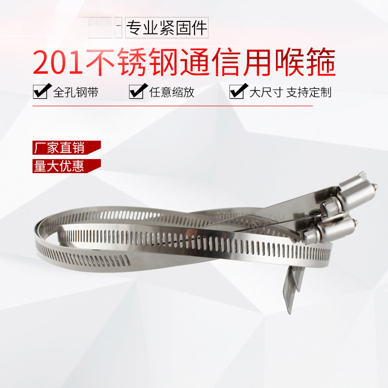 201ステンレス鋼のホースクリップ通信監視バンドの締め付け管の全穴のバンドの締め付け輪