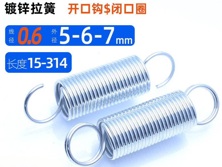 線径0.6*5/6/7亜鉛メッキ引っ張りスプリング引張スプリング閉口リングオープンフックスプリング丸線機械スプリング