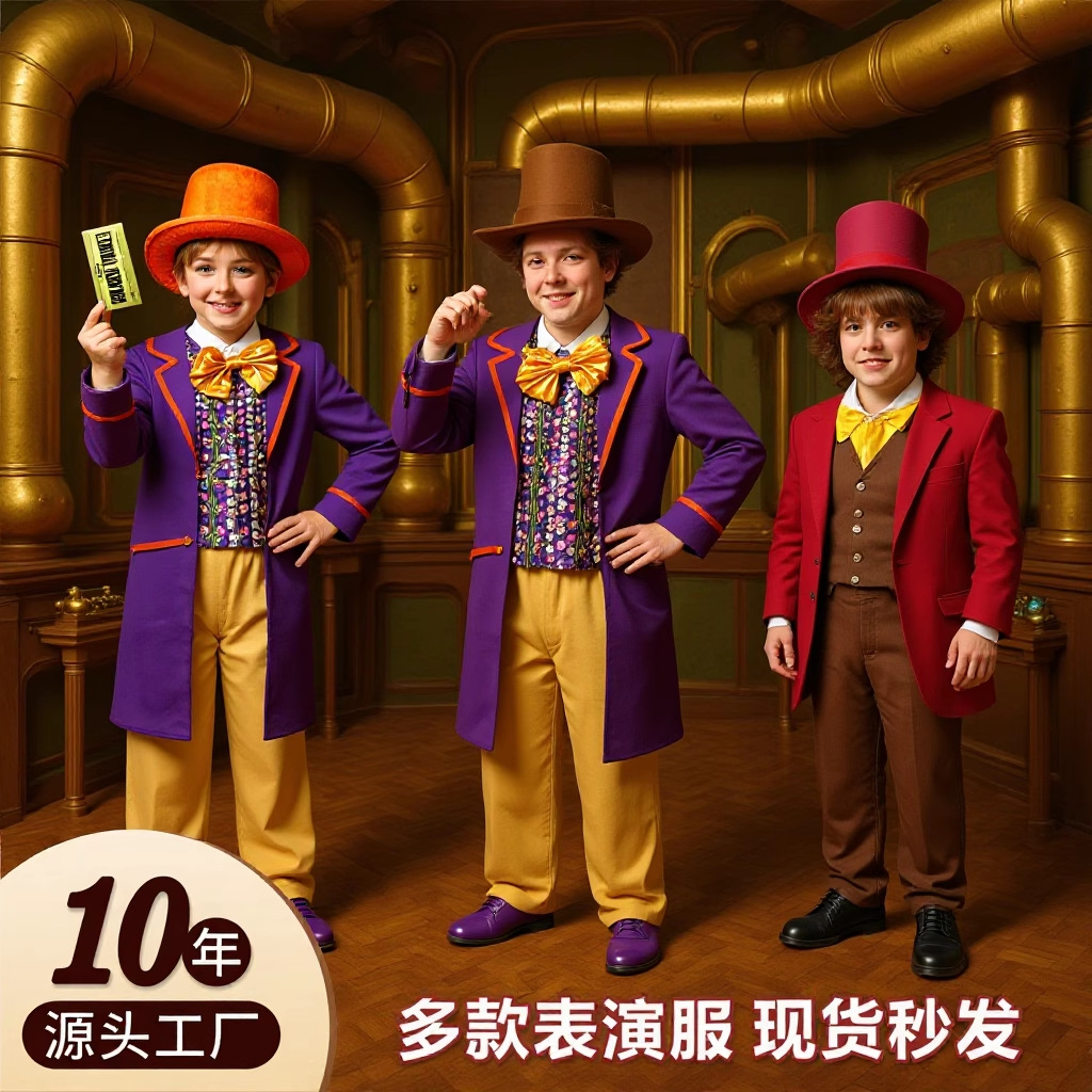 ハロウィンコスチューム越境販売チャーリーとチョコレート工場コスチューム子供用コスプレ衣装ウォンカ